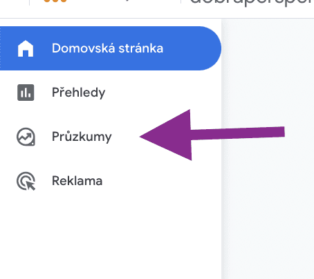 Na panelu vlevo rozklikněte složku „Průzkumy“;